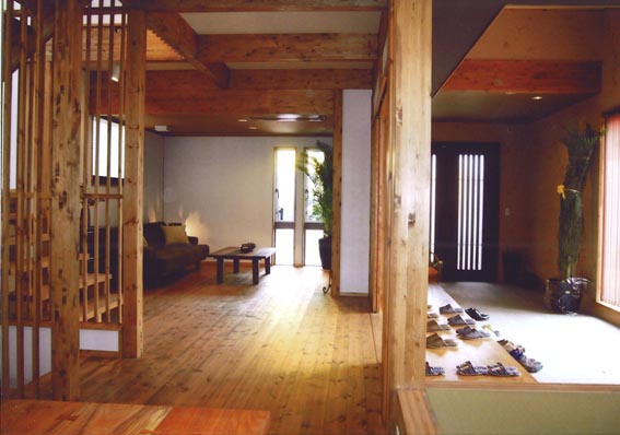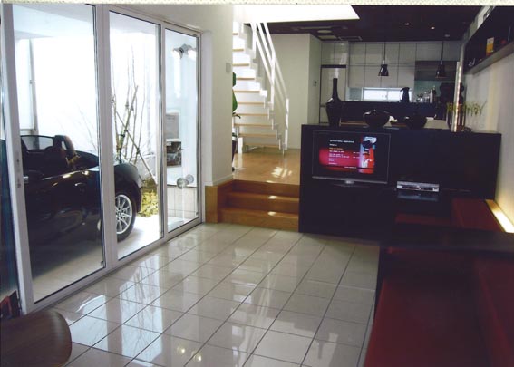 テーマは「 TASTY BOX (自分の趣味を大切にする生活)」 ポラスグループで、注文住宅を手掛けるポラテック(中内晃次郎社長)が春日部住宅展示場のモデルハウスをリニューアル、団塊世代をメインターゲットにした「和美庵(わびあん)」と団塊世代ジュニア向けの「アルジール」の2商品を4月28日オープンする。 前者の外観は「黒」、後者は「白」の対照的なもので、いずれもコンセプトは「 TASTY BOX (自分の趣味を大切にする生活)」。敷地の間口が狭く、平均 30 坪前後の敷地形状、道路事情の悪い地元春日部の街並みに適応させるためリアルサイズ≠フモデルハウスとしたのが特徴で、北側道路を想定している。それぞれ年間35棟の販売を見込む。 「和美庵」は、延べ床面積約4 2坪。墨色のモルタル壁と和瓦仕上げの切妻屋根で、木製の面格子をアクセントにした昔の町屋風の外観。玄関を入ると天井高約 3.6 メートルの広い土間があり、長さ約 4 メートルのヒノキ材の敷台もある。ホール・LDKとマルチスペースは、それぞれ天井高を 2.7 〜 2.2 メートルと意識的に変化させ、壁には調湿効果のある土壁を採用。梁もあえて隠さず、格子壁も多用。主寝室は、夫婦のプライベートを確保できるようにベッドの間にデザイン収納を設けている。トイレは、くつろげるよう書棚を設けている。中二階に設けた踊り場の書棚コーナーまでは廊下幅を約 1.2 メートルと広く取っているのも特徴。坪単価は65万円。 「アルジール」は、延べ床面積40坪。真っ白なモザイクタイルを全面に張った外観で、内装も白が基調で、黒や赤をアクセントに配したモダンなカラーリングが特徴。車が趣味の若い夫婦を想定したもので、リビングに隣接したインナーガレージの車が眺められるようフロアの段差に工夫を凝らし、夜間でも眺められるように窓やライティングにも細かな演出を行っている。趣味のスペースとしてロフトも設けている。坪単価は58万円。 リアルサイズ≠フモデルハウスに納得 記者は分譲住宅の担当がほとんどだったから、住宅展示場のモデルハウスはほとんど見ない。あまりにも豪華で、どうして等身大≠フものを造らないのだろうと不思議に思ってきた。展示場は集客のためで、見せるものなのだろうが、過剰設備仕様はマンションの比ではない。 今回のモデルハウスは、その意味で納得できるものだった。記者も過去2回取材したことのある耐力壁オリンピックの成果が随所に取り入れられているのも納得した。 土壁のデザインが抜群 白のタイルには絵画が最適?