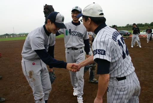 ○石原監督 今日は集中力を持ってやっていたのがよかった。いつものことながら、ピッチャーがよかった。ワハハハハ ●丹治監督 歳の差、相手投手とは15歳ぐらい違うんじゃないか。よく抑えたと思うが…。山下? 次は大丈夫だろう(ゴールドオンの朝青龍≠アと山下投手は体重103キロ。軟弱なマウンドに足元をすくわれたが、温泉治療が必要でないことを祈ろう) ●遊佐 相手の投手はいい。次は必ず打つ(唯一の安打を放ったが、2度討ち取られ)