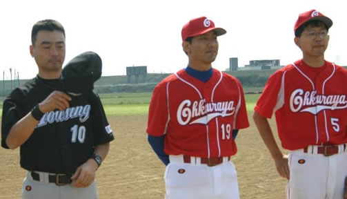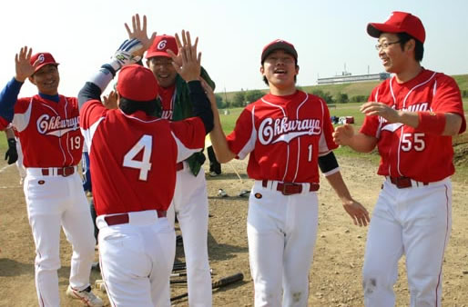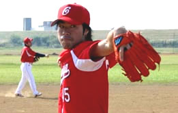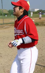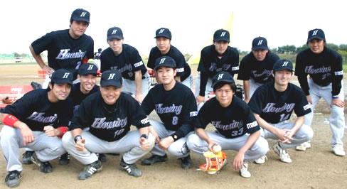 オークラヤ住宅小森投手 左から伊藤忠・面高、オークラヤ松尾監督、保立 野球は完敗≠オたがマンション販売は絶好調でナインの表情も明るい伊藤忠ナイン 宅建試験で42点を取った尾林選手 |