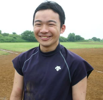 「僕、慶応の仁志と呼ばれていたんです」身長160センチの竹沢八郎選手 (本人は顔が似ているからとその理由を語ったが、記者は背が小さいからだと判断した。野球は高校までとか) |