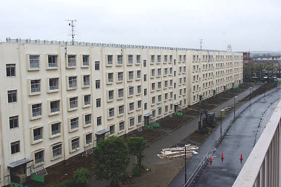 ◇ ◆ ◇ 「調布富士見町住宅」は京王線調布駅から徒歩10数分、東京都住宅公社が昭和41年に竣工した敷地面積約12,000u、延床面積約10,000uの5階建て全176戸。専有面積は約50u。平成20年に建替え推進決議、事業協力者の決定などを決議。一団地規制の廃止、公道の付け替えなどに手間取りながらも23年一括建替えを決議。25年4月に解体工事に着手する。 建替え後は延床面積約35,000u(建ぺい率50%、容積率200%、高さ制限25m)の6階建て・8階建て全331戸となる。専有面積は57.31〜94.64u。還元率は1.16倍。竣工予定は27年春。 建替えに至ったのは、建物が老朽化して漏水事故が絶えず、旧耐震であることの不安、5階建てでエレベータなし、間取り・設備の陳腐化などで、ほぼ全員が建替えに合意したという。
