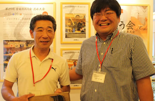 ◇ ジャーブネットの大会では、清水市で行われた「第29回全国削ろう会」に参加した福工房の取締役現場責任者・山本雅彦氏(54)が数ミクロンのカンナの技を実演した。山本氏はこの道38年のベテランだ。シュルシュルと薄絹のようなヒノキの皮が途切れなくカンナ口から吐き出された。板の表面はまるで鏡のように天井のライトを映し出した。触ると赤子のようなえもいわれぬすべすべした感触が伝わってきた。 この技を見て、高田教授が「日本ぐらし館 木の文化研究会」のシンポジウムで「職人の技は世界に誇る無形の文化財」と語ったのを思い出した。山本氏は「刃も大事だが、研ぐことがもっと大事。現場でカンナを削ることはなくなった」と話した。