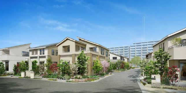 RBA HOME> RBAタイムズHOME >2013年 > 東急不動産 複合開発の「淵野辺」戸建て1期26戸が即日完売 「ブランズシティ淵野辺ガーデンズ」完成予想図 |